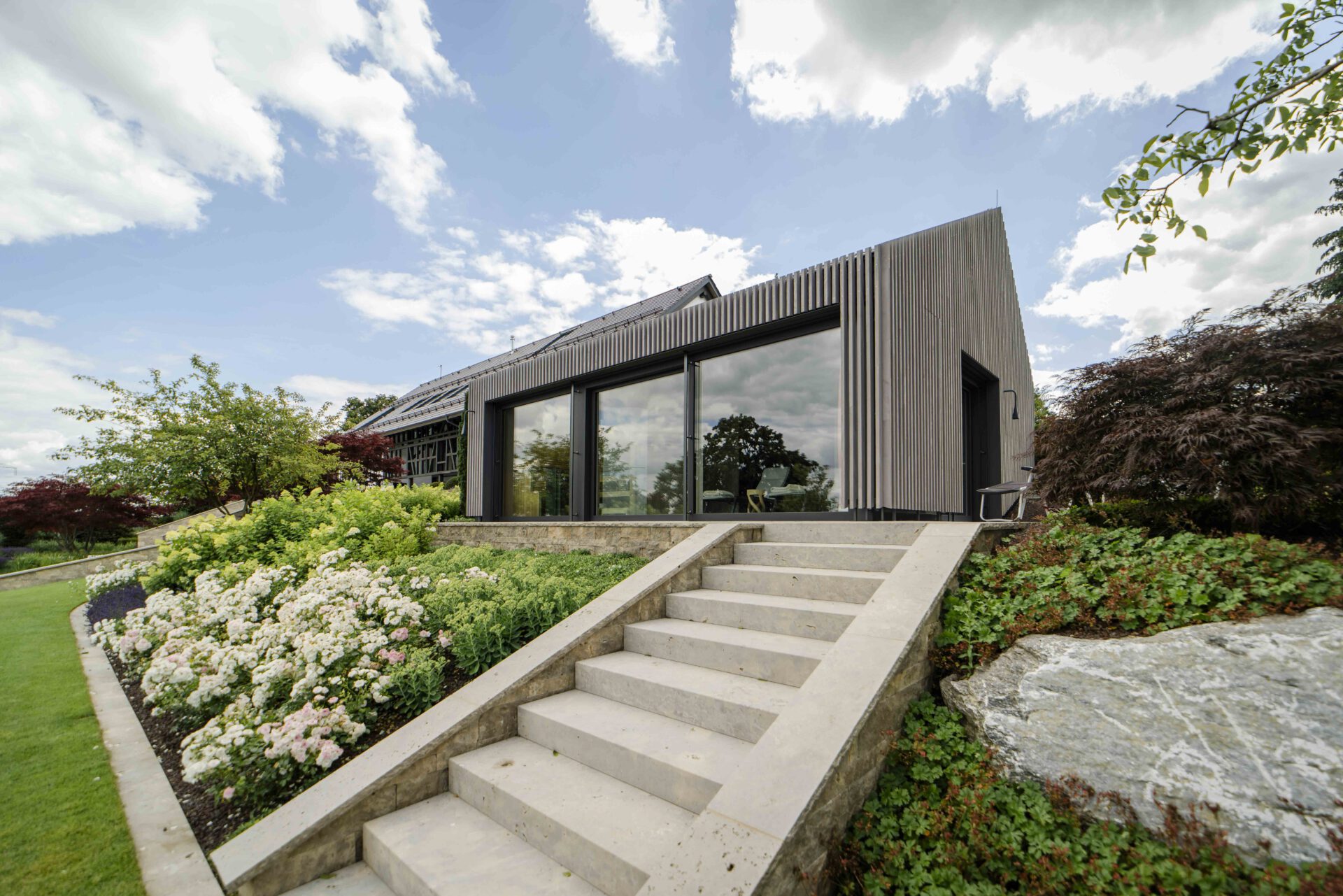 Gemeinsam haben wir verschiedene Referenzen fotografisch festgehalten – von modernen Privatanwesen über die Holzfassade der Genussbäckerei Leutkirch, bis hin zu Industrieprojekten wie bei Reutter Blechbearbeitung in Ingoldingen.